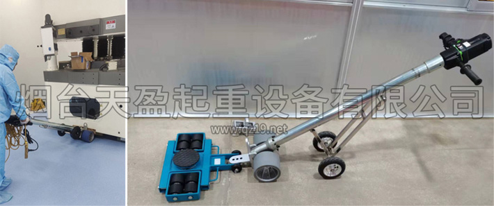 2、电动搬运牵引杆单台牵引力为1000kg,可推移牵引25吨的设备